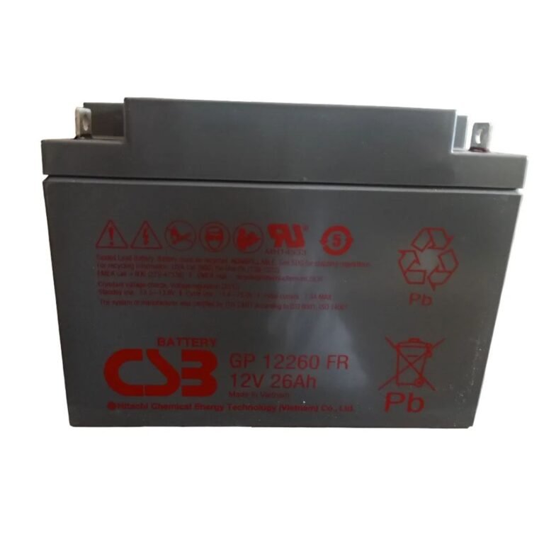 The CSB GP12260 is a dependable 12V, 26Ah general-purpose valve-regulated lead-acid (VRLA) battery designed for both standby and light cyclic applications. Incorporating advanced Absorbent Glass Mat (AGM) technology, it ensures maintenance-free, leak-proof performance with excellent gas recombination efficiency for enhanced safety and reliability. Built to deliver consistent power, the GP12260 is ideal for UPS systems, emergency lighting, security equipment, medical devices, and backup power for communication systems. Its robust construction, low self-discharge rate, and reliable operation across a wide temperature range make it a versatile and long-lasting power source for residential, commercial, and industrial needs.