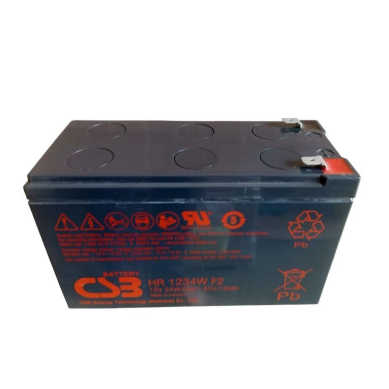 The CSB HR1234 is a high-rate 12V, 9Ah valve-regulated lead-acid (VRLA) battery designed to deliver rapid and reliable power for demanding standby and backup applications. Utilizing advanced Absorbent Glass Mat (AGM) technology, it offers maintenance-free, leak-proof performance and superior gas recombination efficiency. Built to provide high-discharge rates, it is ideal for UPS systems, emergency lighting, medical equipment, security systems, and other critical power backup setups. With its robust construction, low self-discharge, and dependable performance across varied environmental conditions, the HR1234 ensures consistent and long-lasting power delivery when it matters most.